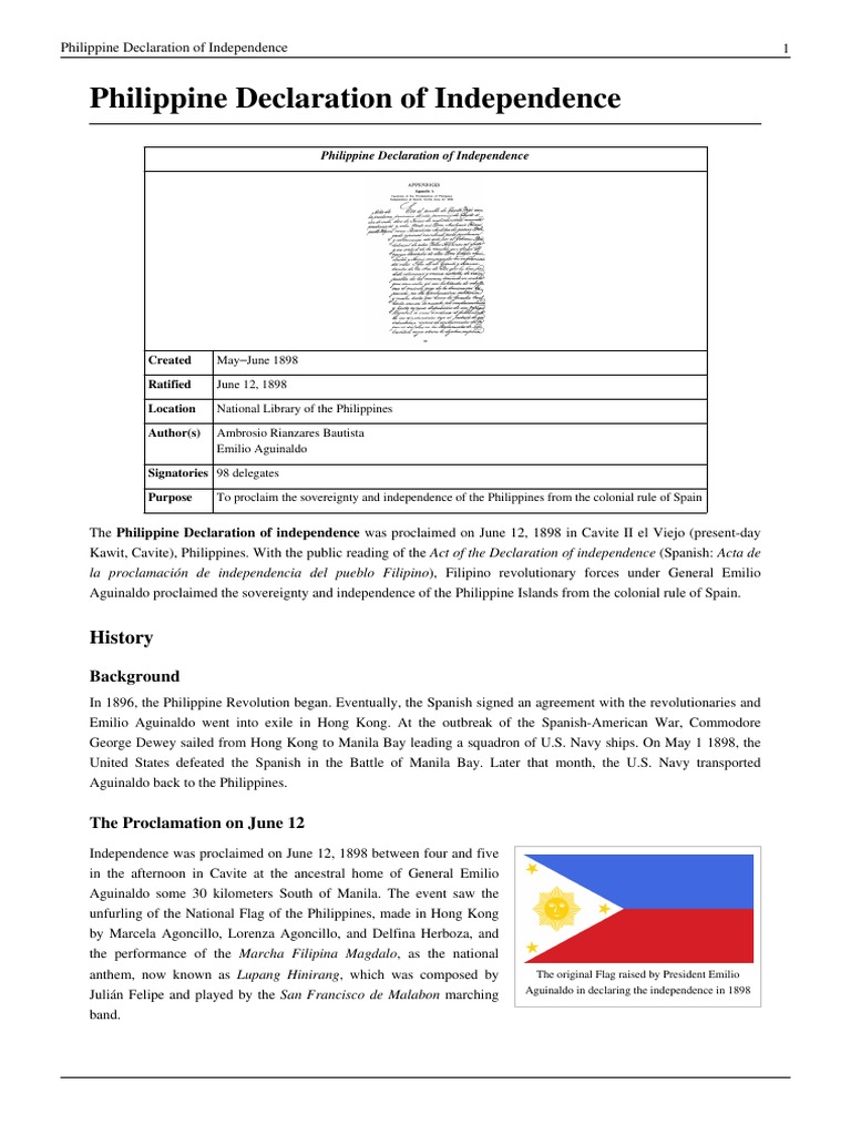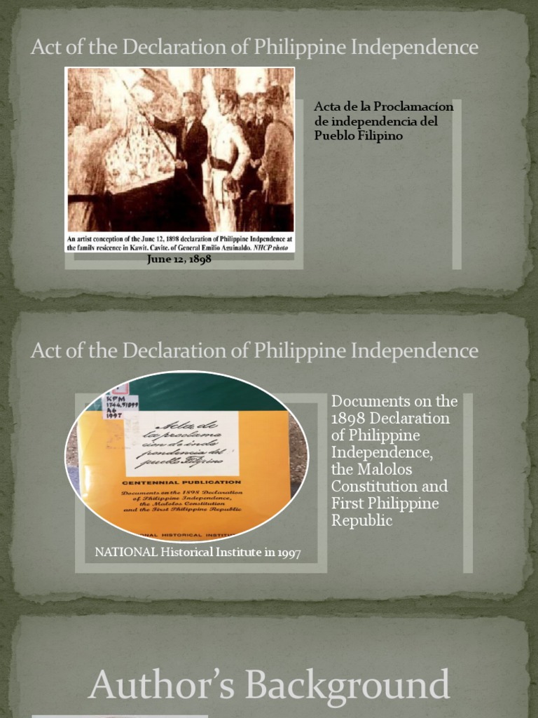 The house in question was built in 1849. On june 12, 1898, general emilio aguinaldo proclaimed the independence of the philippines from spanish rule. On june 12, 1898, emilio aguinaldo proclaimed the philippines' independence in kawit, cavite. Act of proclamation of philippine independence on june 12, 1898 located at national library of the in other words, less than 20 years after june 12, 1898 the great majority of philippine domestic policy. Macapagal underscored that june 12, 1898 is the true birthday of an independent filipino nation for it was on this day that the country showcased to the world its resolve to consider itself absolved of.